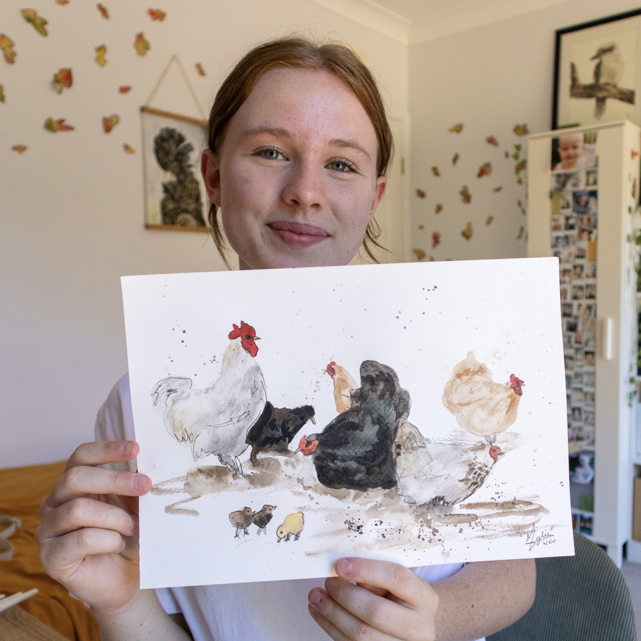 Create a beautiful watercolour chicken flock using simple techniques, and easy to follow steps. This digital tutorial package is designed especially for beginners or children, with homeschool families in mind.