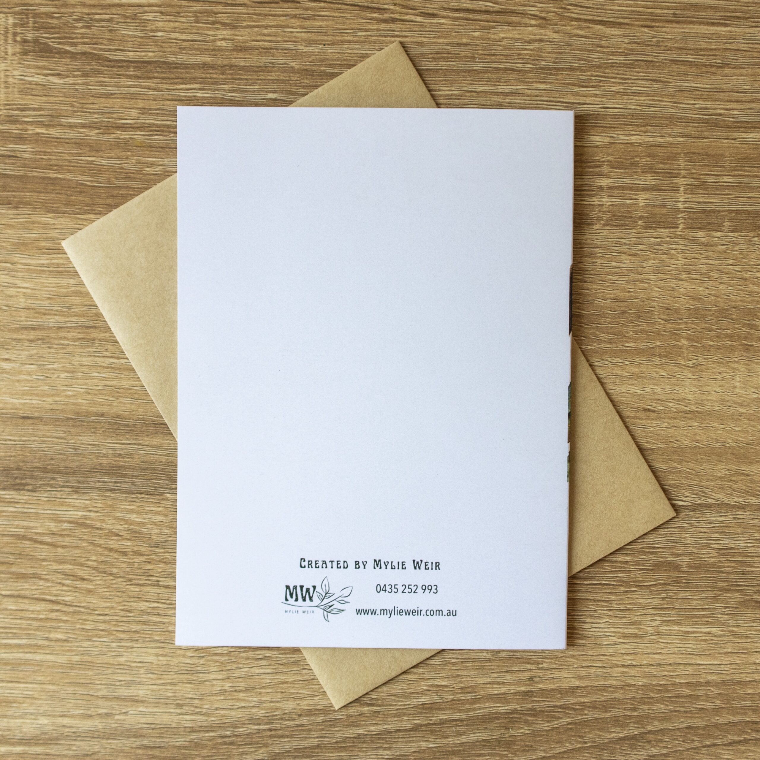 “Lorikeet Forage” 5×7 inch greeting card. Printed on high quality card stock from RGB Digital.